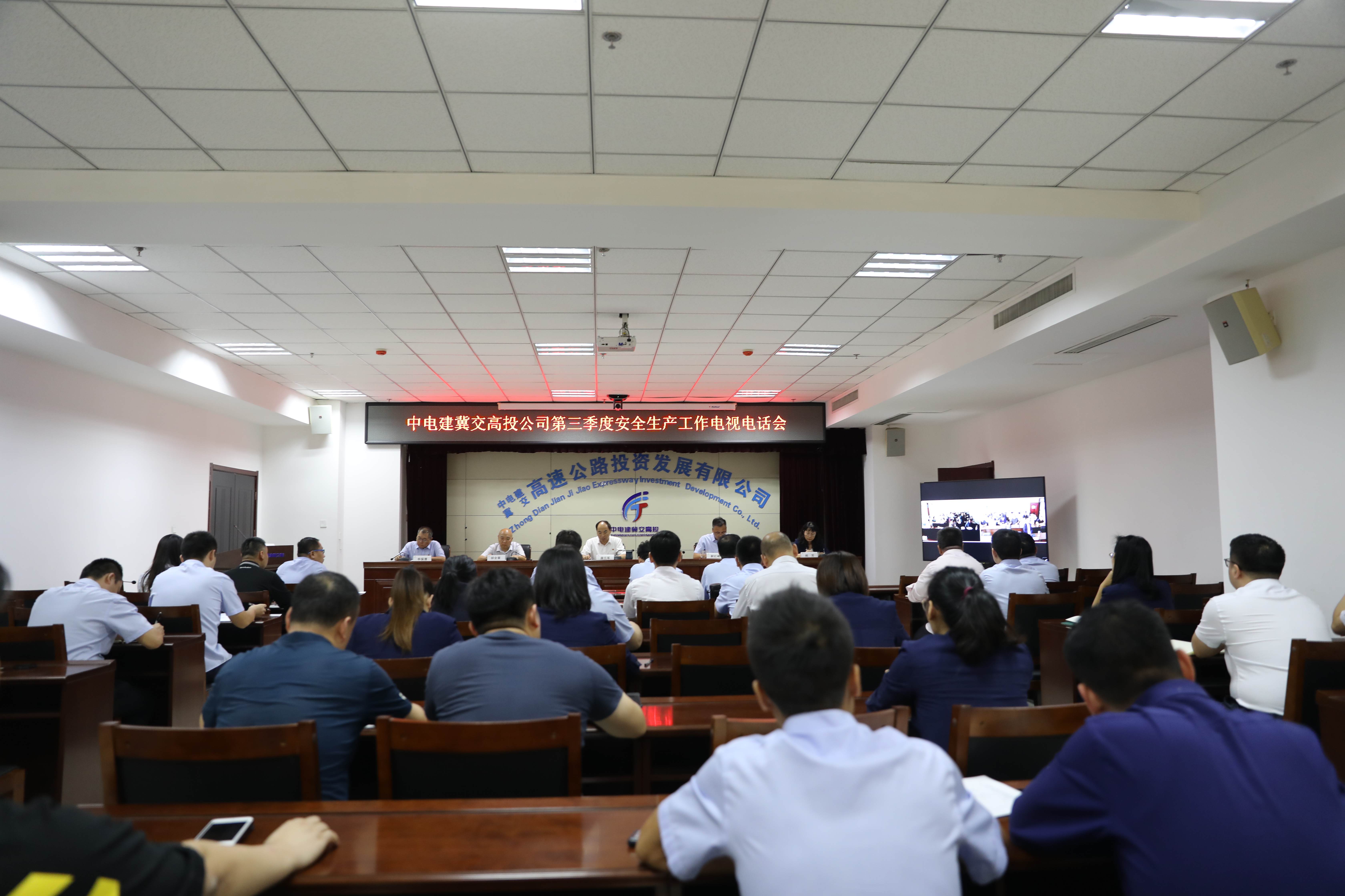 9月27日,中电建冀交高投公司组织召开2020年第三季度安全生产工作电视电话会,会议详细分析了当前安全生产形势,安排部署了当前及今后一段时间重点工作和任务,进一步统一了思想、明确了任务、强化了措施,为全面做好公司2020年安全生产工作奠定了坚实基础。公司党委书记、总经理唐兰军及其他经营层领导出席了会议。
