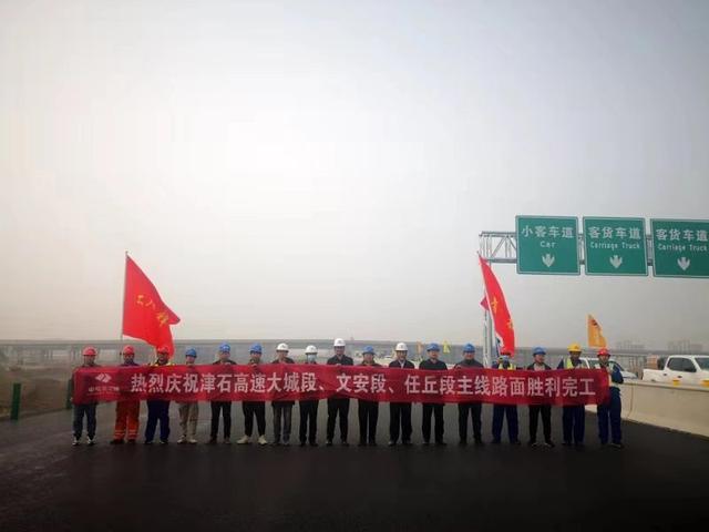 2020年11月16日上午,随着天津至石家庄国家高速公路与京德高速交叉枢纽互通最后一公里的沥青路面摊铺完成,由中电建路桥集团有限公司津石高速公路项目河北高速公路总承包部路面JSLM1经理部承建的津石高速任丘段已全面完工,标志着天津至石家庄国家高速公路大城段、文安段,任丘段、安国段和定州段共计104.82公里已经胜利完成主线路面全部贯通。