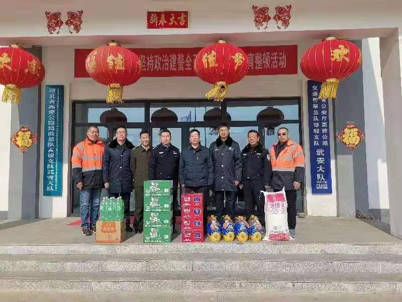 2月10日,在春节来临之际,中电建冀交高投公司组织开展“冬日送温暖”走访慰问路警党组织活动,为沿线坚守岗位的路警同仁送去新春的祝福。
