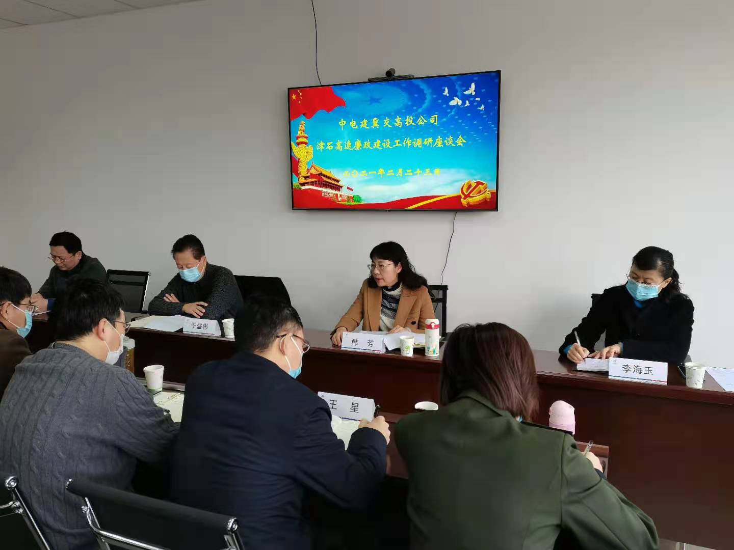 2021年2月23日,中电建冀交高速公路投资发展有限公司纪委书记韩芳、运营总监于盛彬等一行到津石高速公路,就2021年的党风廉政建设工作与17个基层单位、34名基层负责人进行调研座谈。