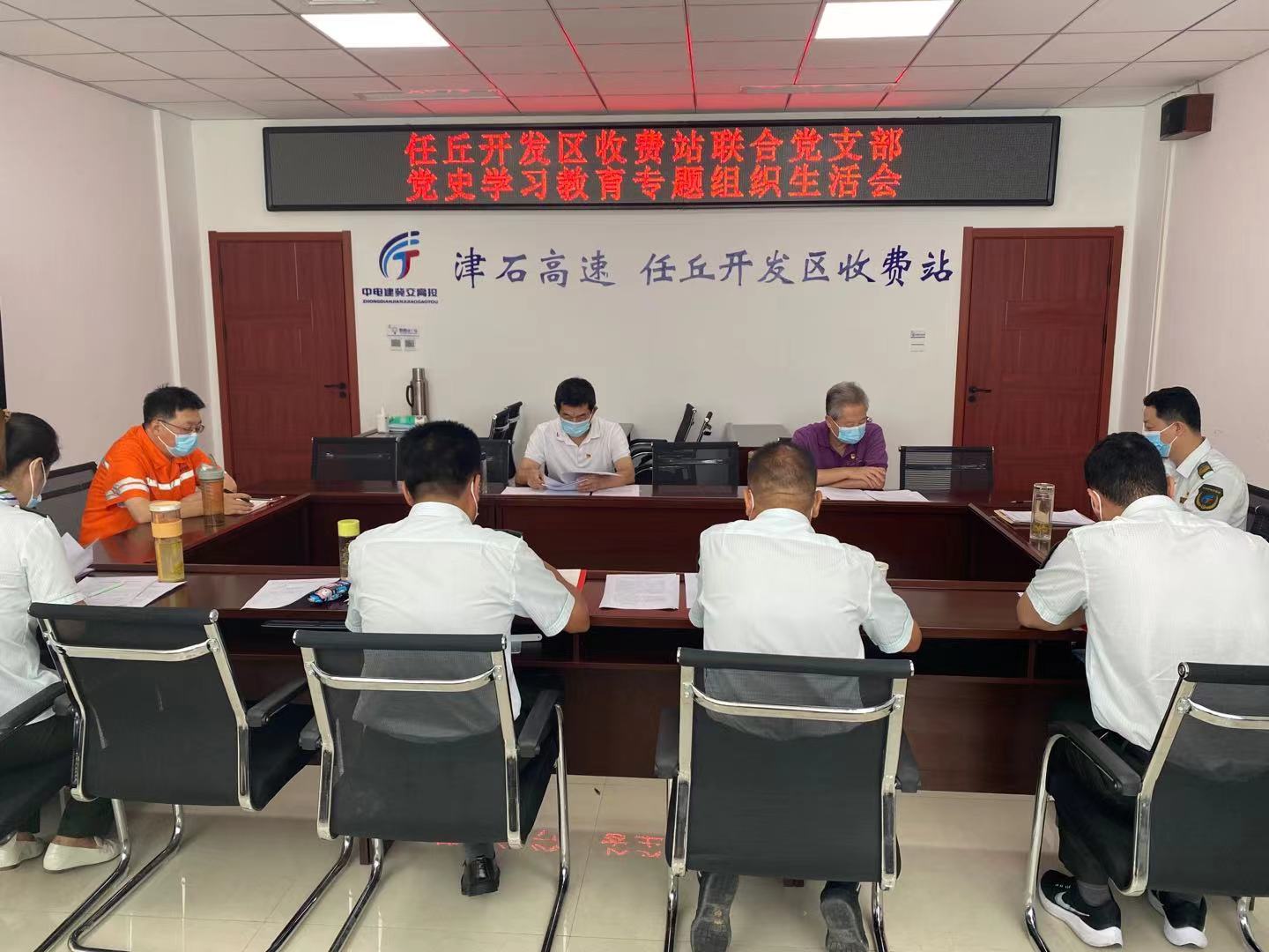 按照公司党委统一部署,8月11日上午,中共中电建冀交高投公司津石高速任丘开发区收费站联合党支部召开党史学习教育专题组织生活会。公司党委委员、津石筹建处处长马凤槐,公司运营总监、津石筹建处副处长于盛彬到会指导。
