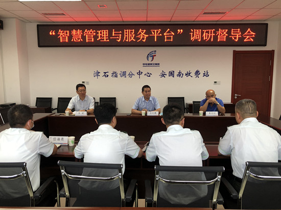 8月19日上午,中电建冀交高投公司副总经理王大德一行到津石指调分中心就河北交通投资集团公司“智慧管理与服务平台”应用进行调研督导。