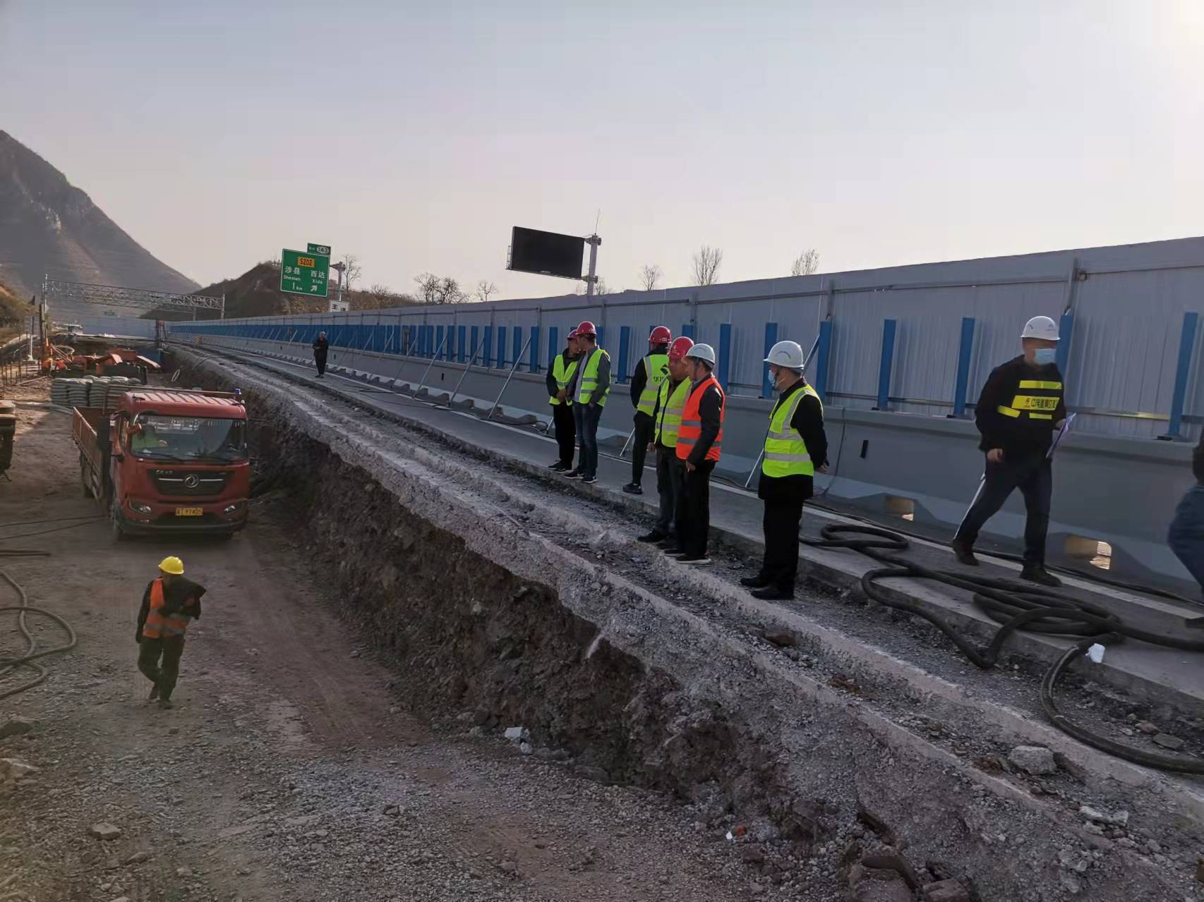 随后,安全总监陈任务对K141路面裂缝修复现场进行安全督导,一是听取了华川总包部对交通导改现场情况的汇报,对夜间警示效果进行了影像资料查看;二是对现场燃料发电机、钻孔机等设备操作规程进行了查看,对燃料柴油的存放数量、存放位置、消防情况进行了检查;三是对冬季野外作业易发静电现象做了作业工序要求,要求采取必要防护措施,切实消除因静电引起的消防事件。