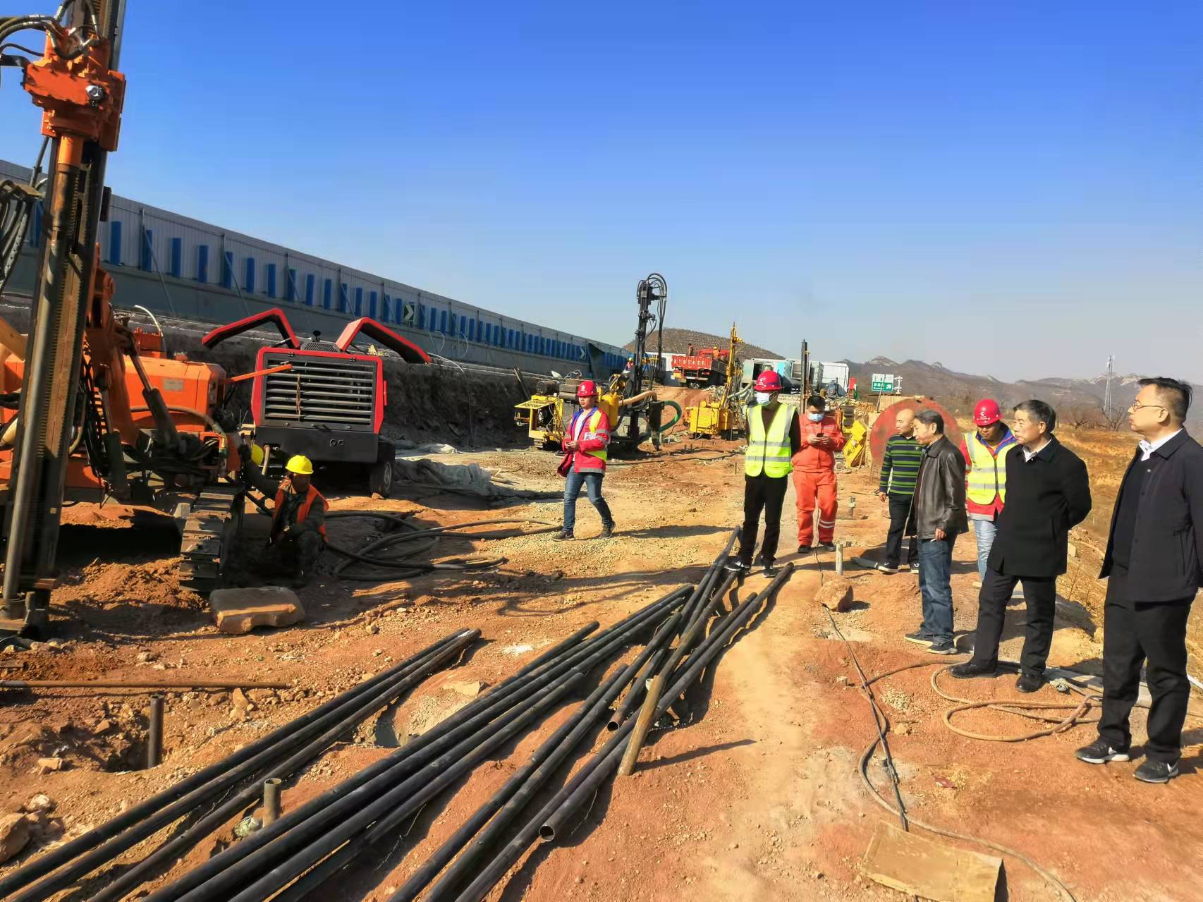 11月26日,公司副总经理尉红彬、总工程师胡全章、安全总监陈任务、运营总监何占军、工程管理部主任杨欣一行就邯郸段水毁修复情况现场督导,重点对K141段路基水毁、王金庄宿办区挡墙部位现场指导。对树根桩钻孔深度及间距、注浆孔间距及数量、注浆压力等技术参数现场实测和抽验。尉红彬指出一是要严格把控施工质量,严格控制注浆工艺;二是要做好现场安全防护工作,对现场临时用电和各管线做好梳理管控;三是加快施工进度,尽快完成水毁修复工作。公司工程管理部、西达工区、华川总包部等有关单位参加。
