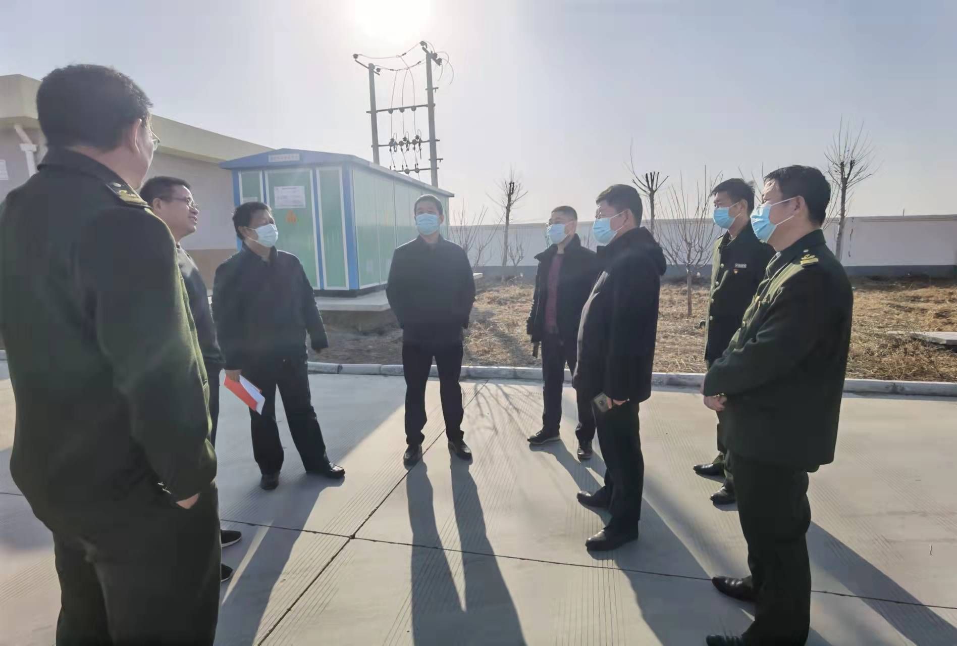 王大德现场查看工区物料储备、机械设备存放,收费站机电、取暖、发电、消防等设备使用及防疫抗疫、人员管理情况,听取了各站区的汇报,对相关隐患点提出指导性意见。