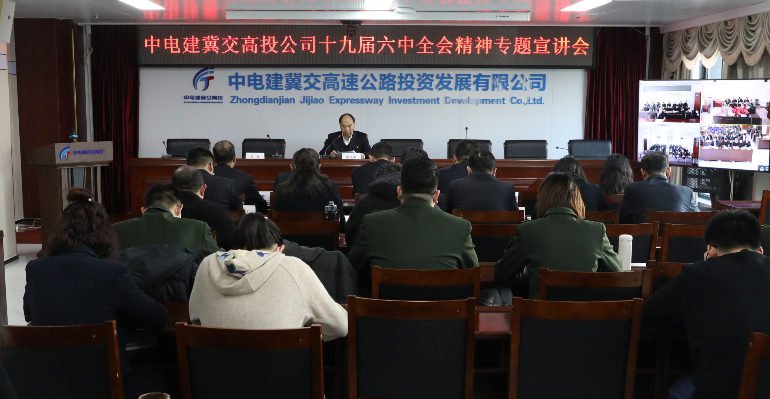 2021年12月31日,中电建冀交高投公司召开党的十九届六中全会精神专题宣讲会,进一步掀起学习宣传贯彻全会精神热潮,引导广大党员干部职工凝聚奋进力量,在即将到来的2022年再立新功、再创新高。公司党委书记、总经理唐兰军代表公司党委作专题宣讲报告,会议由党委委员、副总经理李凡主持,公司领导班子成员出席会议。