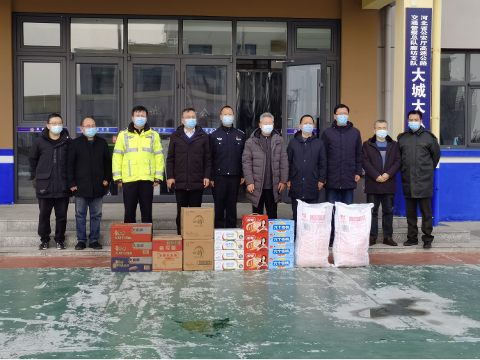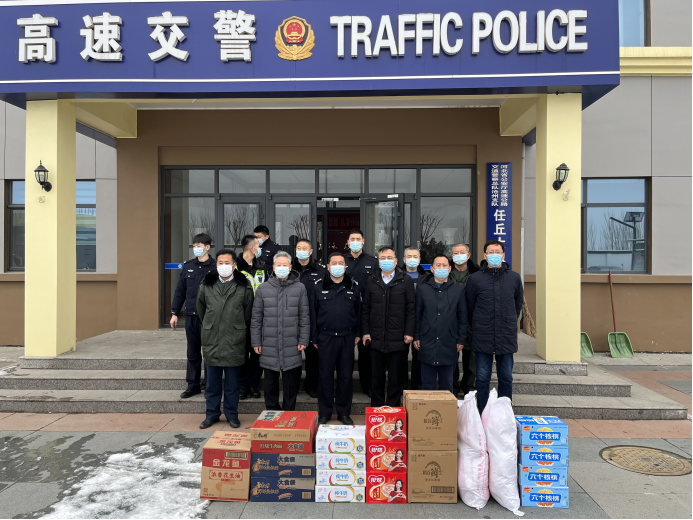 1月24日,为感谢津石高速开通一年来交警单位对津石高速公路保通保畅工作的支持,在新春佳节来临之际,公司副总经理尉红彬,运营总监于盛彬,工程管理部主任杨欣一行走访慰问博野、任丘和大城等交警大队,为奋战在津石高速工作一线的交警同志送上食用油、牛奶、米面等生活慰问品。津石指调中心、相关工区及收费站负责人陪同参加。