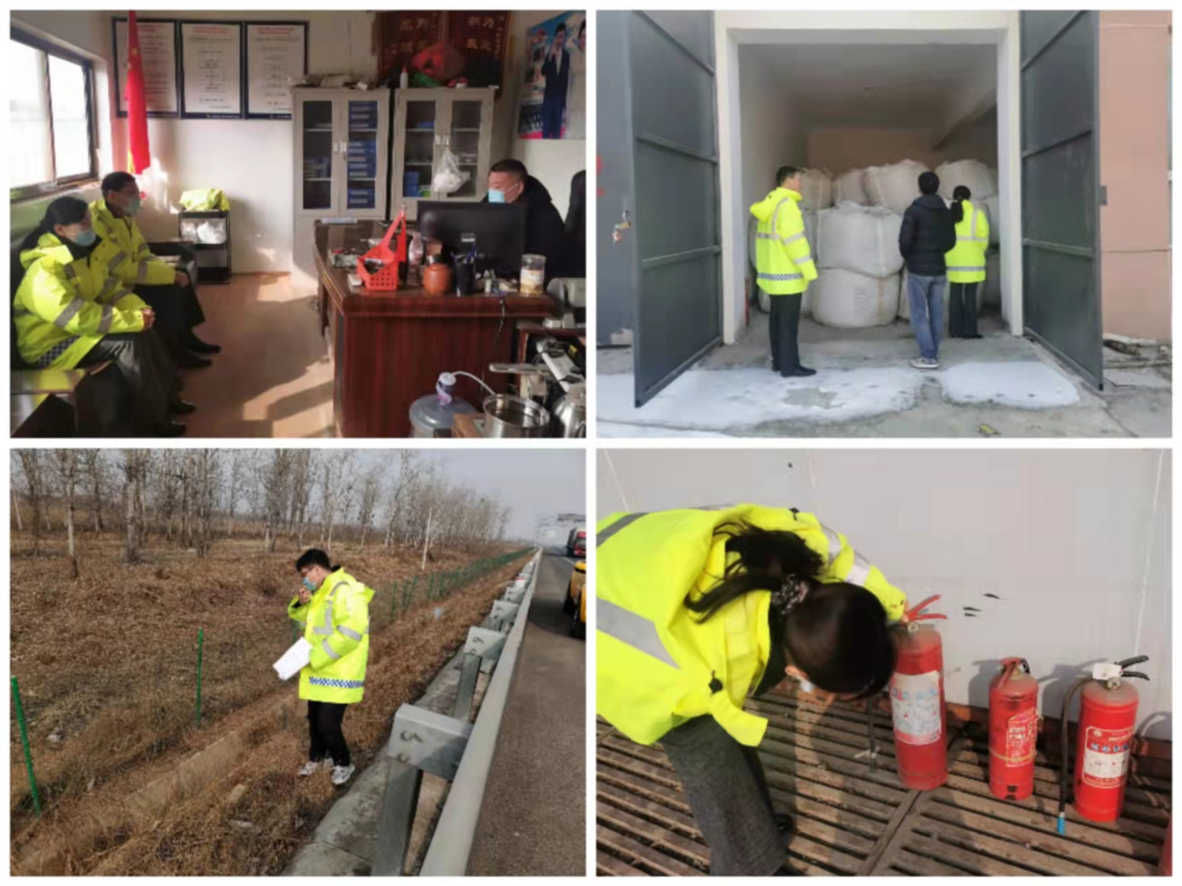 一是检查了外协队伍疫情防控管理各项措施落实情况,叮嘱各单位人员节假日期间仍要执行非必要不出行,不去中高风险地区的政策,外出时科学佩戴口罩、勤洗手、保持1米以上的社交距离等良好的卫生习惯。二是重点对站区及外协队伍驻地办公室、宿舍区的用电线路进行了安全隐患排查,并要求员工下班前关闭电源开关,防止电线老化造成的火灾隐患。三是检查门卫值班值守情况,要求节日期间一定要注意防火、防盗,确保全员人身、财产安全,并对灭火器等消防设施进行全面检查,确保消防设施设备处于良好状态。四是对材料库房进行全面检查,要求材料管理人员提前做好节日期间的应急物资储备工作。五是对新元高速辖段的重点路段、重点部位进行全面排查,对发现的问题要求立即进行整改,确保新元高速春节假期及冬奥会期间的行车畅通。