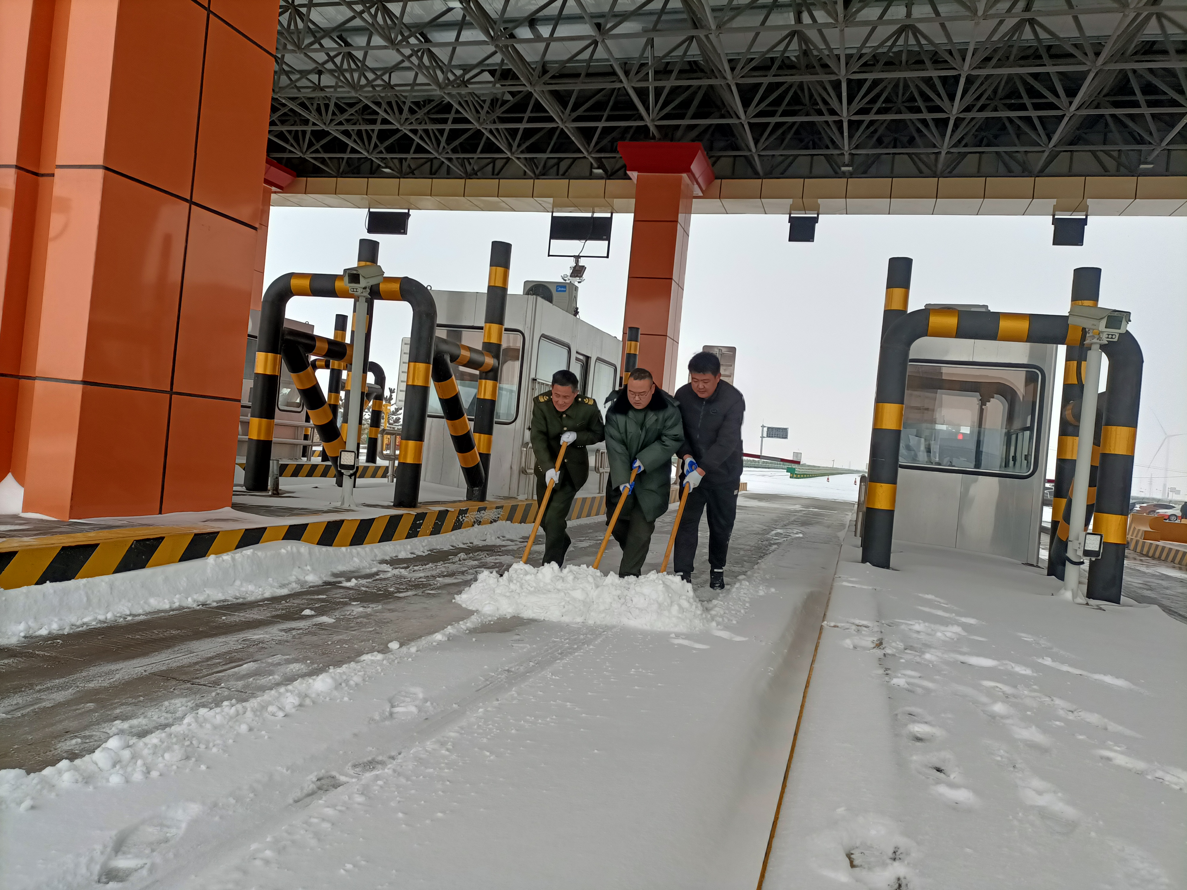 经过两个多小时的努力,收费车道、收费广场积雪已全部清理完毕,为解除交通管制之后安全快速通行做好安全保畅工作。
