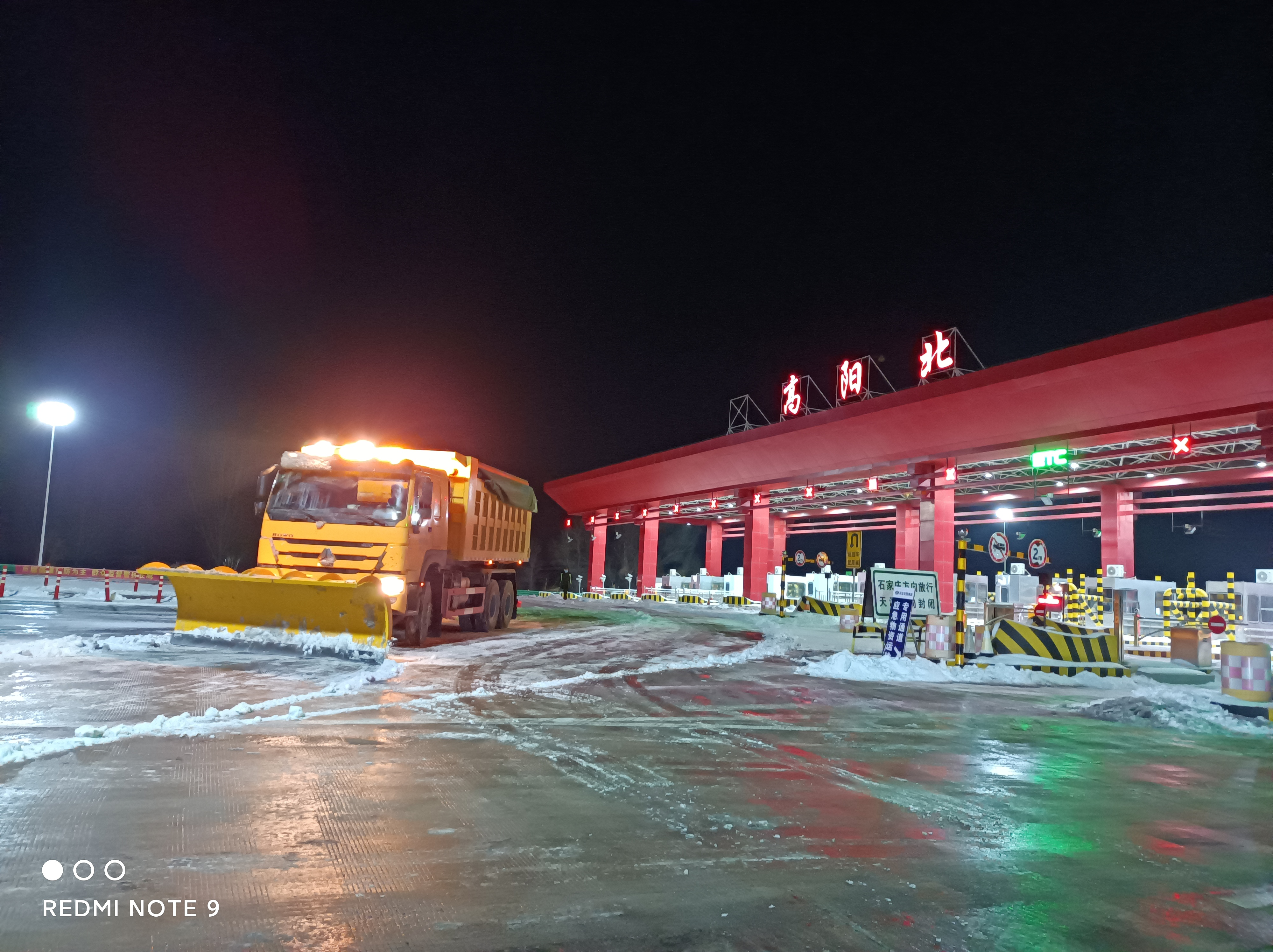 2022年2月13日高阳县迎来一次强降雪天气,高阳北收费站站区、内外广场、车道被大雪覆盖,雪停后收费站在站全体职工迅速组成除雪保畅小组,利用除雪铲、铁锹、扫帚等除雪工具迅速对必要的收费车道、广场局部的积雪展开清理。由于收费广场较大,为防止因收费站内外广场路面积雪、结冰造成车辆打滑等安全事故的发生,经沟通,任丘工区、高阳工区立即组织车辆到高阳北收费站对广场及全部车道进行融雪除冰作业,尽一切可能保证车道、路面的安全通畅。
