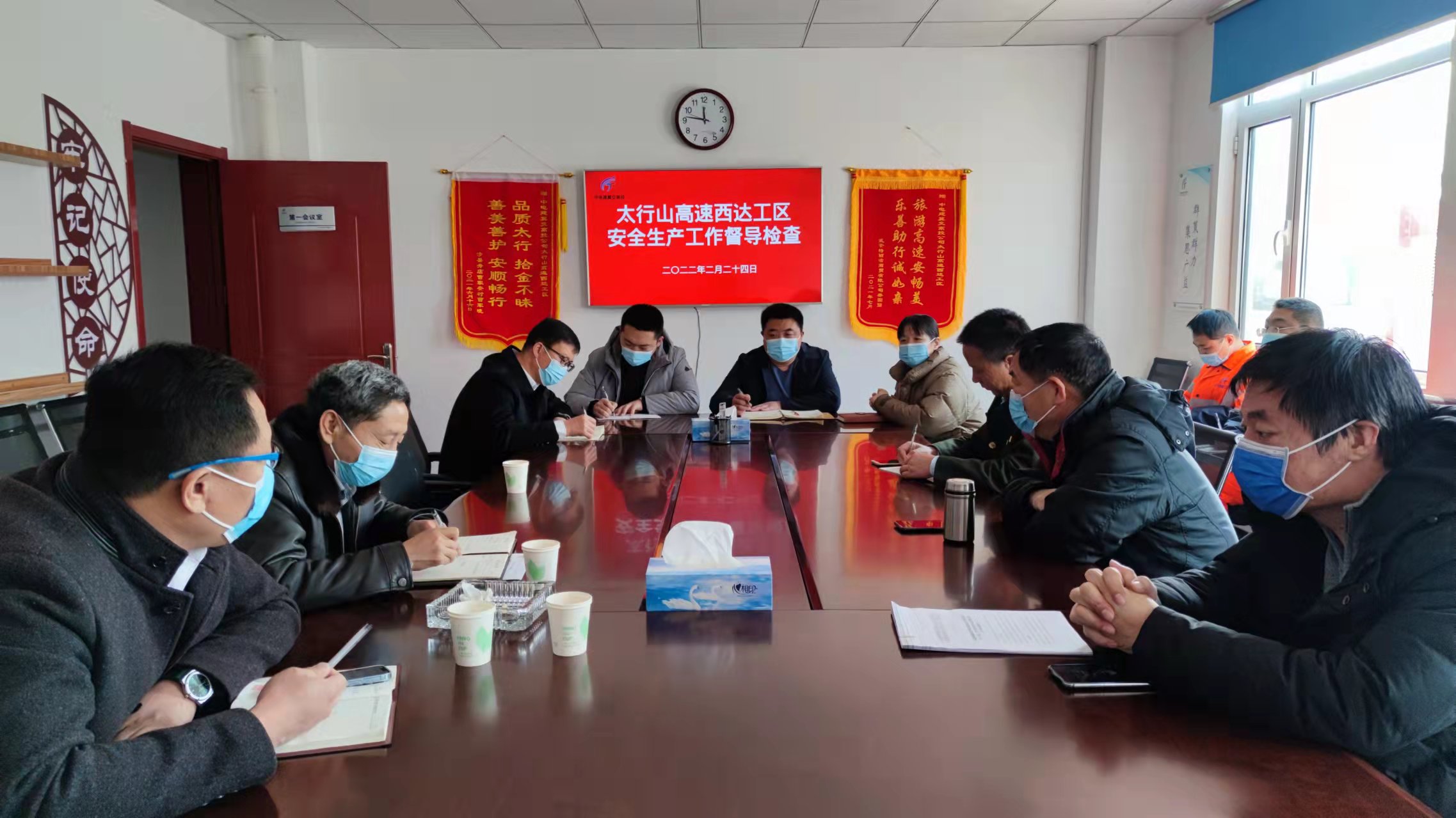 2月24日,公司安全总监陈任务和安全部贺钊、张亚林、谷会杰一行到西达工区督导检查安全生产工作,同时对安全标准化建设、疫情防控及安全管理等内容进行指导。陈总指出:一是邯郸段施工作业点多面广,安全生产工作形势严峻,要切实提高“安全第一”的思想认识。二是要严格落实安全生产标准化要求,逐项对照,促使安全生产标准化达标;三是要强化日常养护作业队伍及相关方安全监管,安全生产教育培训及安全设施准备不齐全不允许上路作业。三是要谋划今年安全生产各项工作,主抓薄弱环节,做好日常安全交底及检查工作。四是要积极落实上级部门关于疫情防控的工作要求,凡涉中高风险区返冀人员,必须做好隔离、劝返及上报工作。