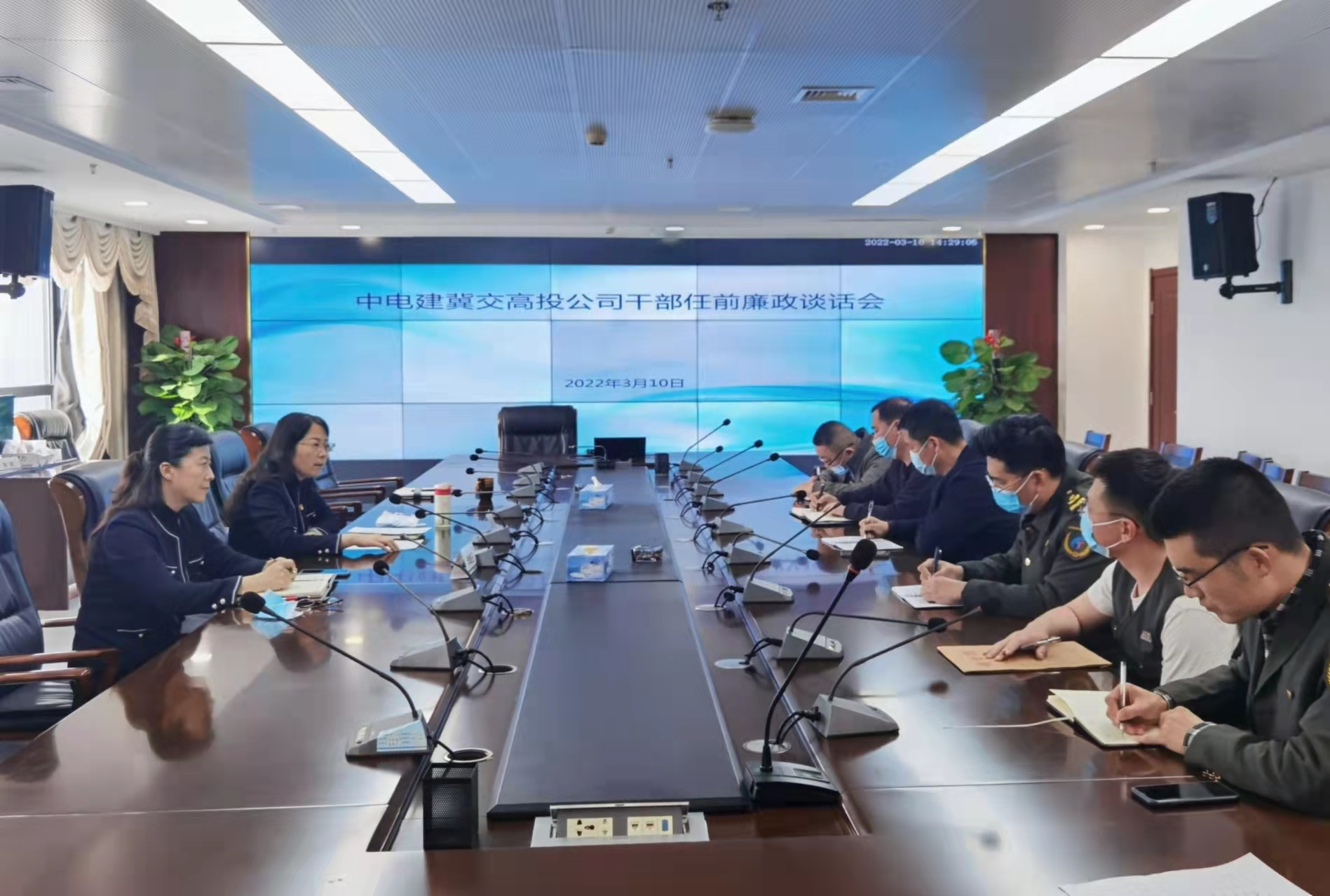 3月10日,中电建冀交高投公司纪委召开新任干部任前廉政谈话会,纪委书记韩芳对新任命的6名基层单位干部进行了廉政谈话,公司纪检室人员参加会议。