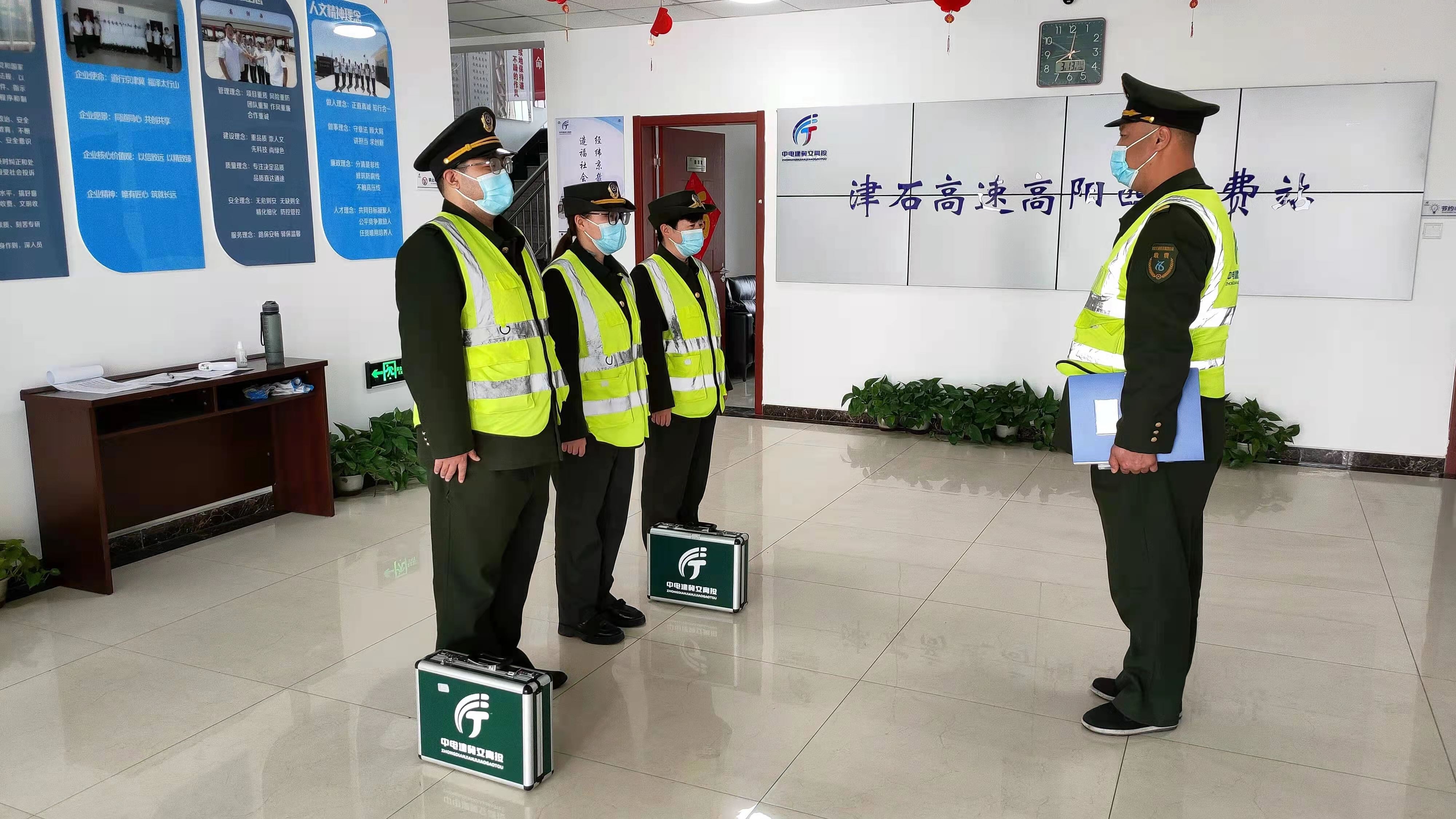 近期各地疫情再一次袭来,高阳西收费站一班利用岗前三分钟传达公司对疫情防控要求,提醒本班员工落实防疫措施,增强安全意识,并提出要求。