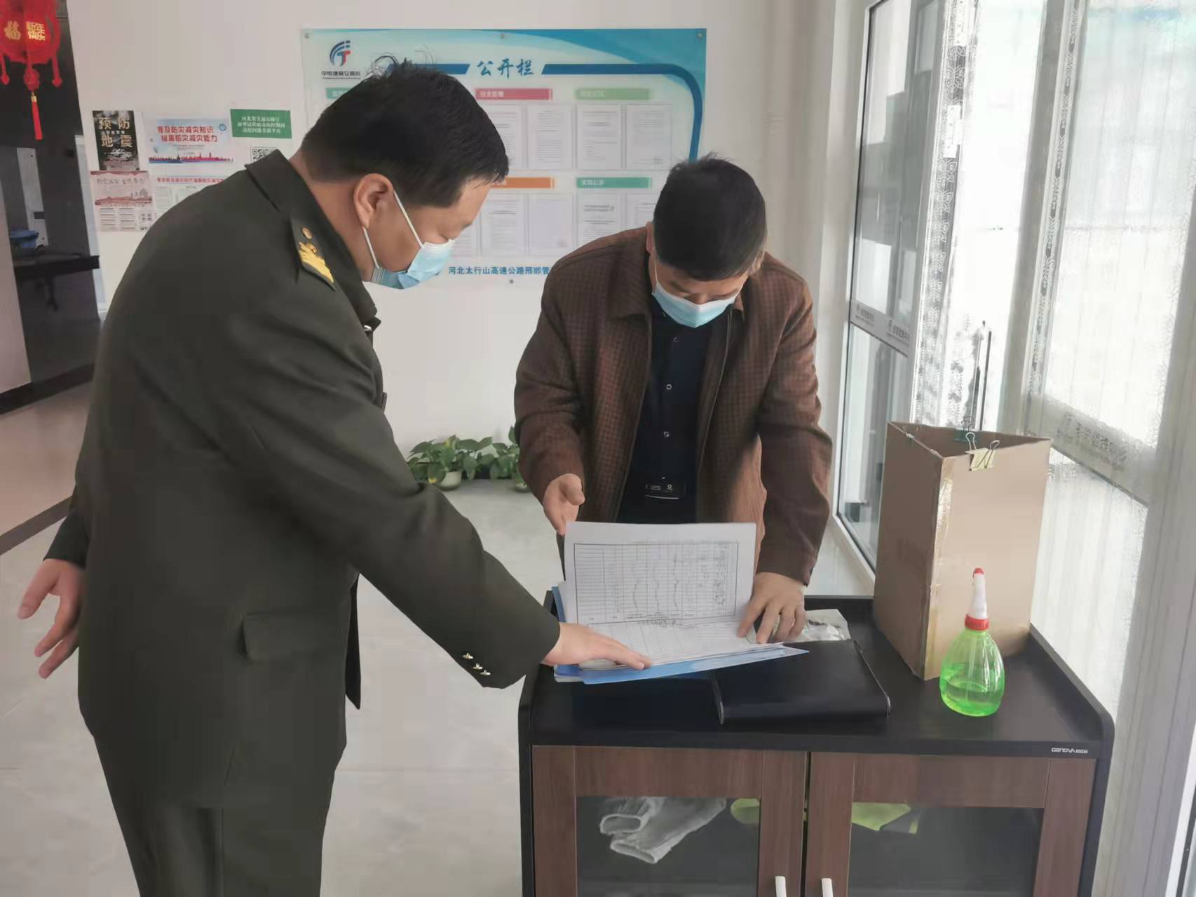 何占军现场查看了中心出入人员登记表、人员日常体温监测、消毒记录等,对近期人员管理、疫情防控工作提出具体要求:一是要深刻理解唐总讲话精神,严格落实上级疫情防控相关文件要求,做好相关疫情防控文件的宣贯工作。二是做好返岗登记工作,强化站区大门管控,把好测温关、验码关、消毒关、登记关。三是要自觉遵守各项防护措施,落实报备制度,减少人员流动,对于不能返家的员工做好安抚工作。四是务必组织好全体职工每周核酸检测工作,切实实现重点人群核酸检测全覆盖,确保不漏一人、不留死角。五是工作留痕,做好疫情防控原始记录,加大疫情防控工作的宣传力度。