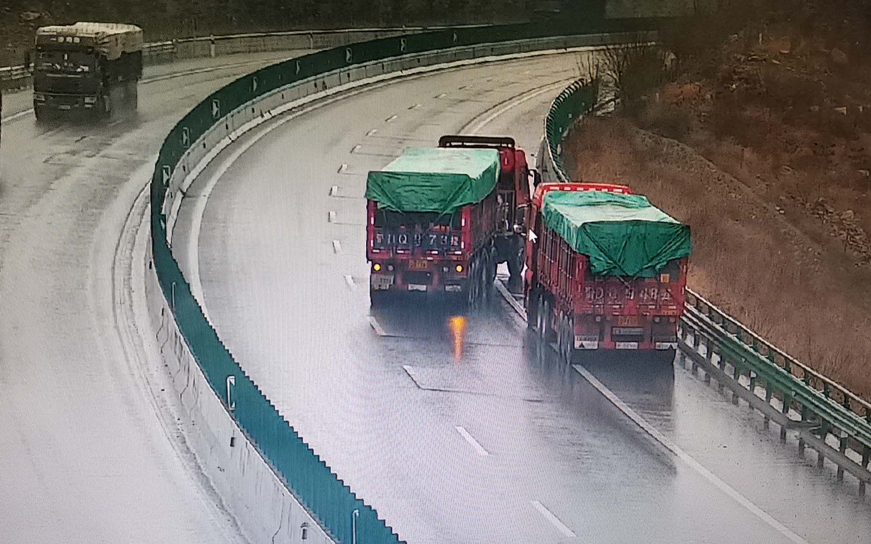 2022年3月25日中午时分,监控二班在道路轮巡发现有货车停靠在应急车道,而后其中一辆货车又停靠在行车道,情况十分危险。监控班组立即启动应急预案,一人迅速与交警工区联系,将视频画面发送到路况保障群;一人迅速更改情报板,提醒后方行驶车辆注意避让;一人通过大屏持续关注车辆情况,并通过道路广播提醒问题车辆让出行车道,停靠应急车道。