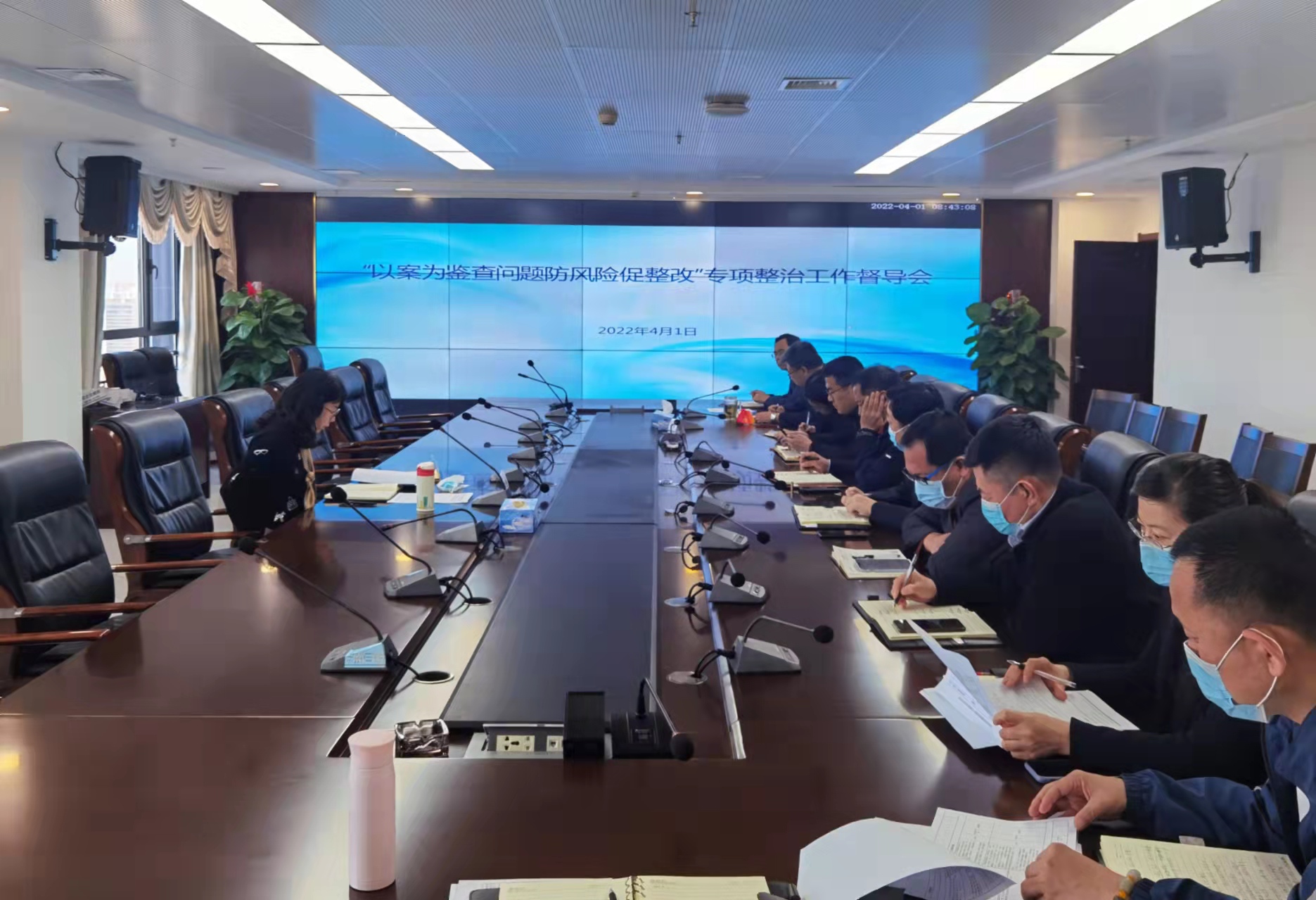 4月1日,中电建冀交高投公司召开“以案为鉴查问题防风险促整改”专项整治工作督导会,公司纪委书记韩芳主持会议,公司各部室主要负责人参会会议。