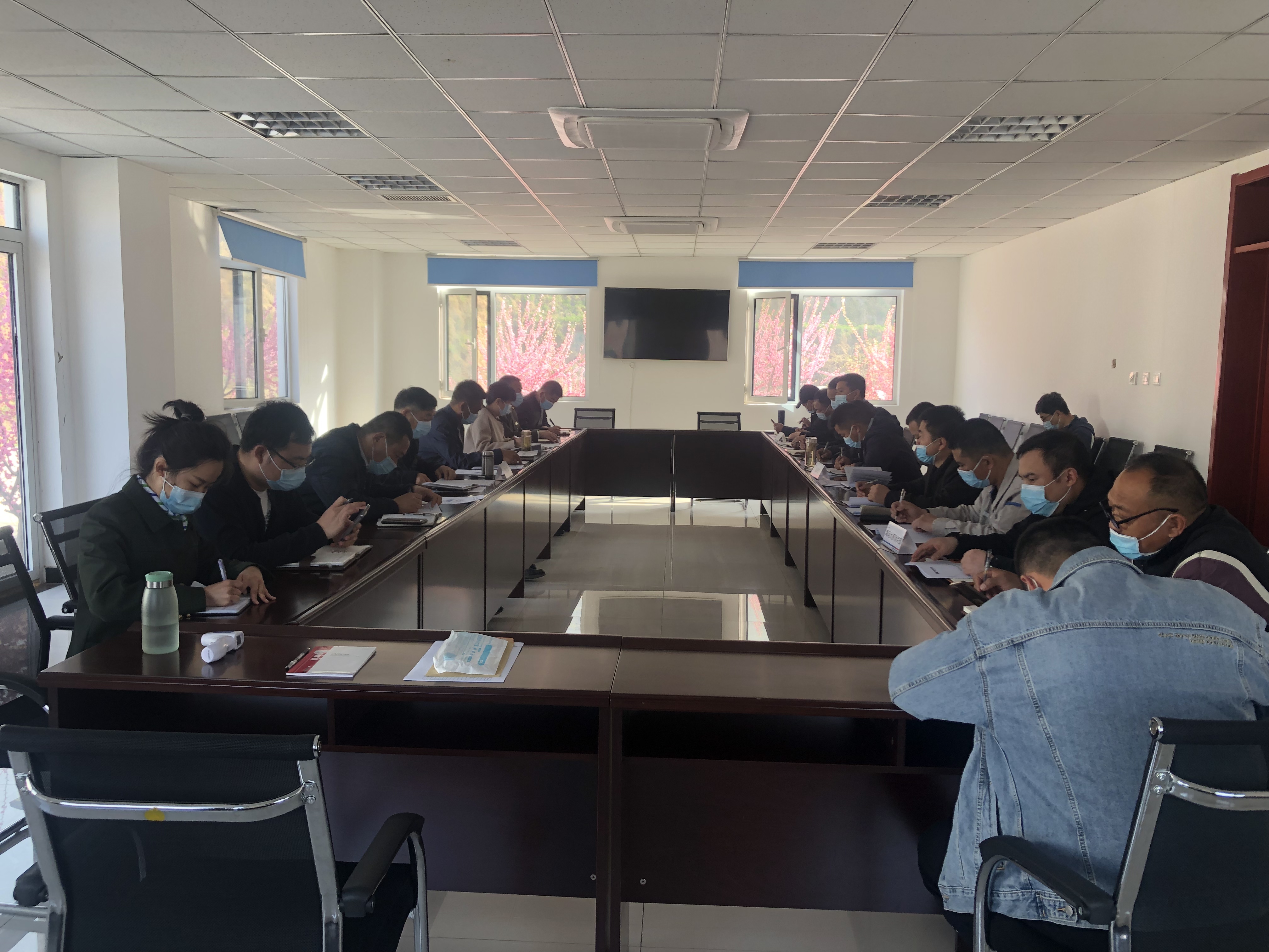 何占军副处长提出具体工作要求:一是完成任务目标时间紧迫,所有关键性、节点性、控制性工程都要在汛期前完成,各单位要高度重视,有紧迫感,层层传导工作压力,谋划部署各项工作,要有明确时间节点;二是完成任务目标要拓展思路,主动作为,抛去等靠思想,每项工作都要主动出击,迎难而上,想问题要全面,处理问题要换位思考;三是完成任务目标要同心同德加强协作,防止干工作情绪化,要妥善处理好与地方政府、上级主管部门的关系,要加强沟通,各单位要明确关键问题、关键线路、关键节点,发扬钉钉子的精神;四是完成任务目标要做好疫情防控工作,不能麻痹大意,严格落实当地防疫办和上级部门要求,做好日常人员登记、测温、消毒消杀工作,看好自己的门管好自己的人,尤其是漳河大桥,是两省交通要道,要严防死守;五是完成任务目标要以人为本,各单位要制定隐患清单,开展防火、防汛等各项应急演练,临水临崖要做好围挡,做好电气设备防雨措施,临建工程要做好防风措施。严禁野外用火,禁止烟头乱丢。所有人员禁止酒后作业。筹建处收尾组全体人员,第三总监办负责人、华川总包部及施工分部负责人、中电建路桥漳河大桥项目部负责人参会。