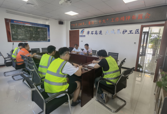 2022年8月11日下午,大城工区组织全体职工召开“大干100天,喜迎二十大”工作精神布置会,迅速传达上级动员会精神,并布置下阶段工作,一是各组各岗位员工,明确职责,相互配合,迅速汇总各岗位工作要点,制定大城工区“大干100天,喜迎二十大”工作计划,做到实事求是,求真务实;二是全体职工严格遵守工作纪律,全身心投入到工作当中,不畏困难,迎难而上;三是继续加强与高速交警、路政等单位信息共享,相互配合,持续推动路警一体化协同。