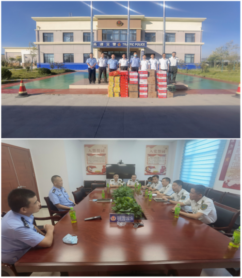 2022年9月6日下午,津石指调中心,大城工区,大城西收费站,大城东收费站相关负责人代表公司共同到高速交警大城大队进行中秋节前慰问,向中秋节坚守一线的高速交警致以诚挚的问候。