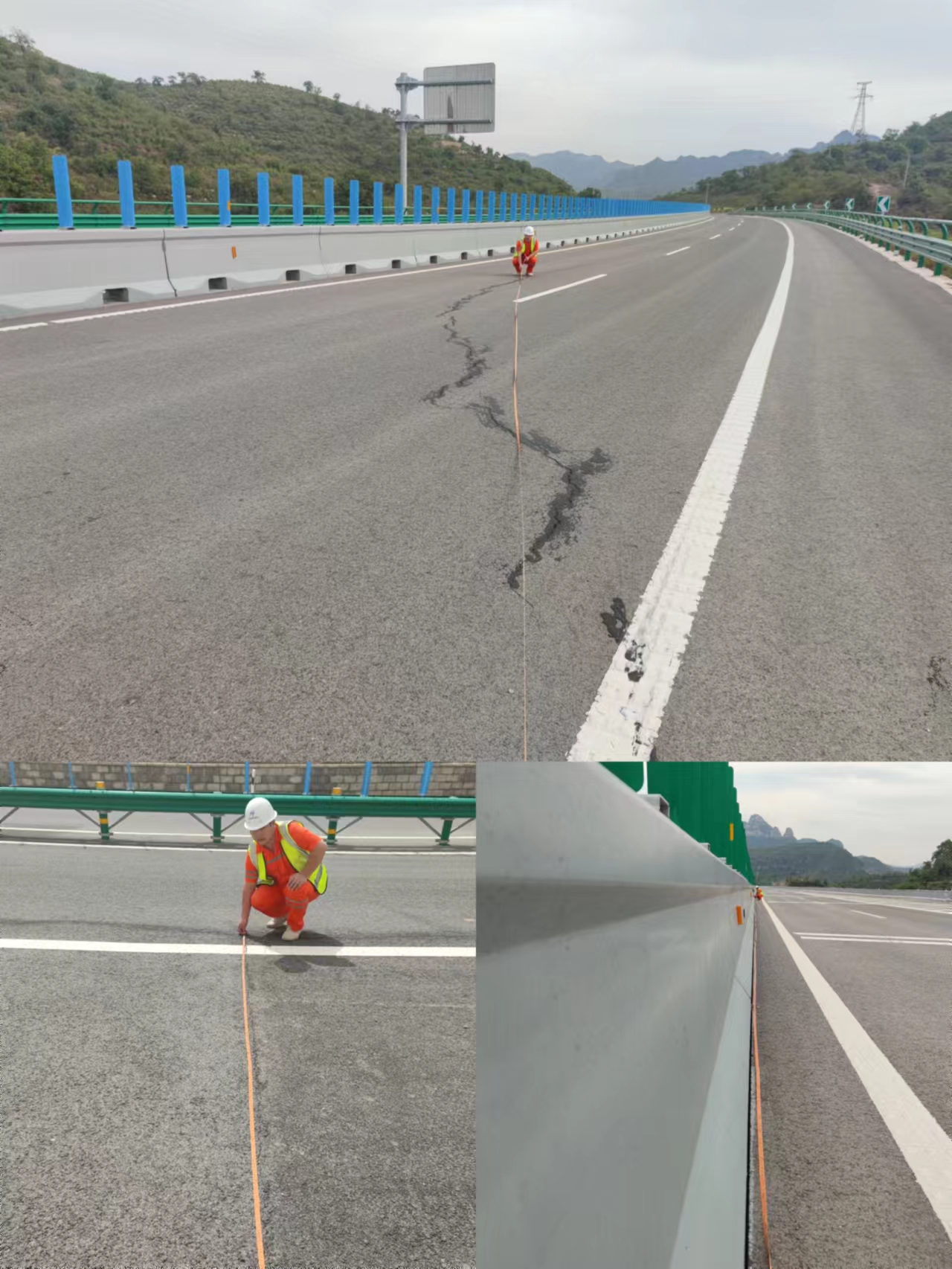 本次踏查主要针对路面裂缝进行排查。今年汛前,工区组织开展全线路面裂缝排查治理工作,共计沥青路面灌缝千余米,有效杜绝因雨水灌入裂缝造成二次损坏。汛中工区坚持做好雨中巡查,重点观察路面是否有新发展的裂缝,利用本次踏查,工区全面对路面细致检查,建立隐患台账,及时处治路面裂缝。