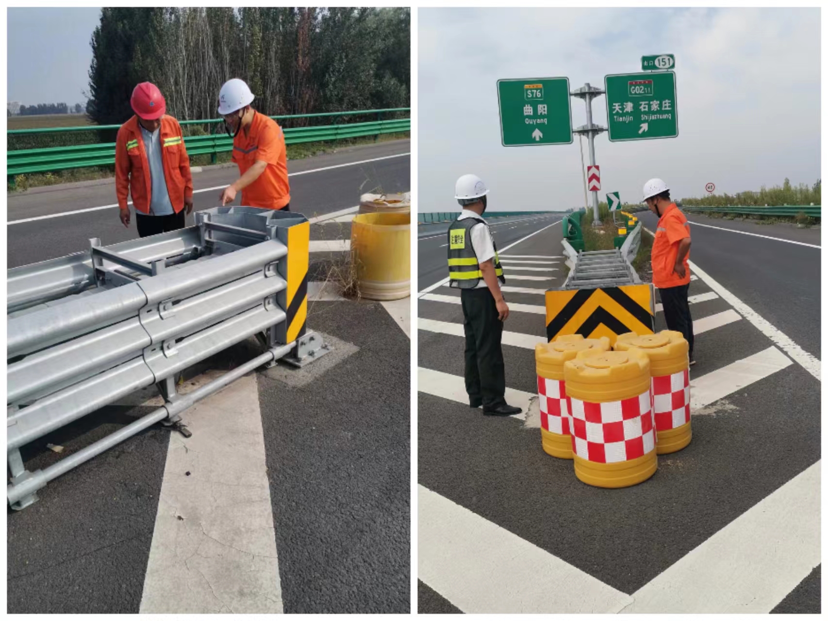 为持续做好“大干一百天,喜迎二十大”各项工作,根据公司工程部工作部署,9月14日上午博野工区对辖区内的各互通出口及服务区入口的防撞设施进行了全面细致的排查。
