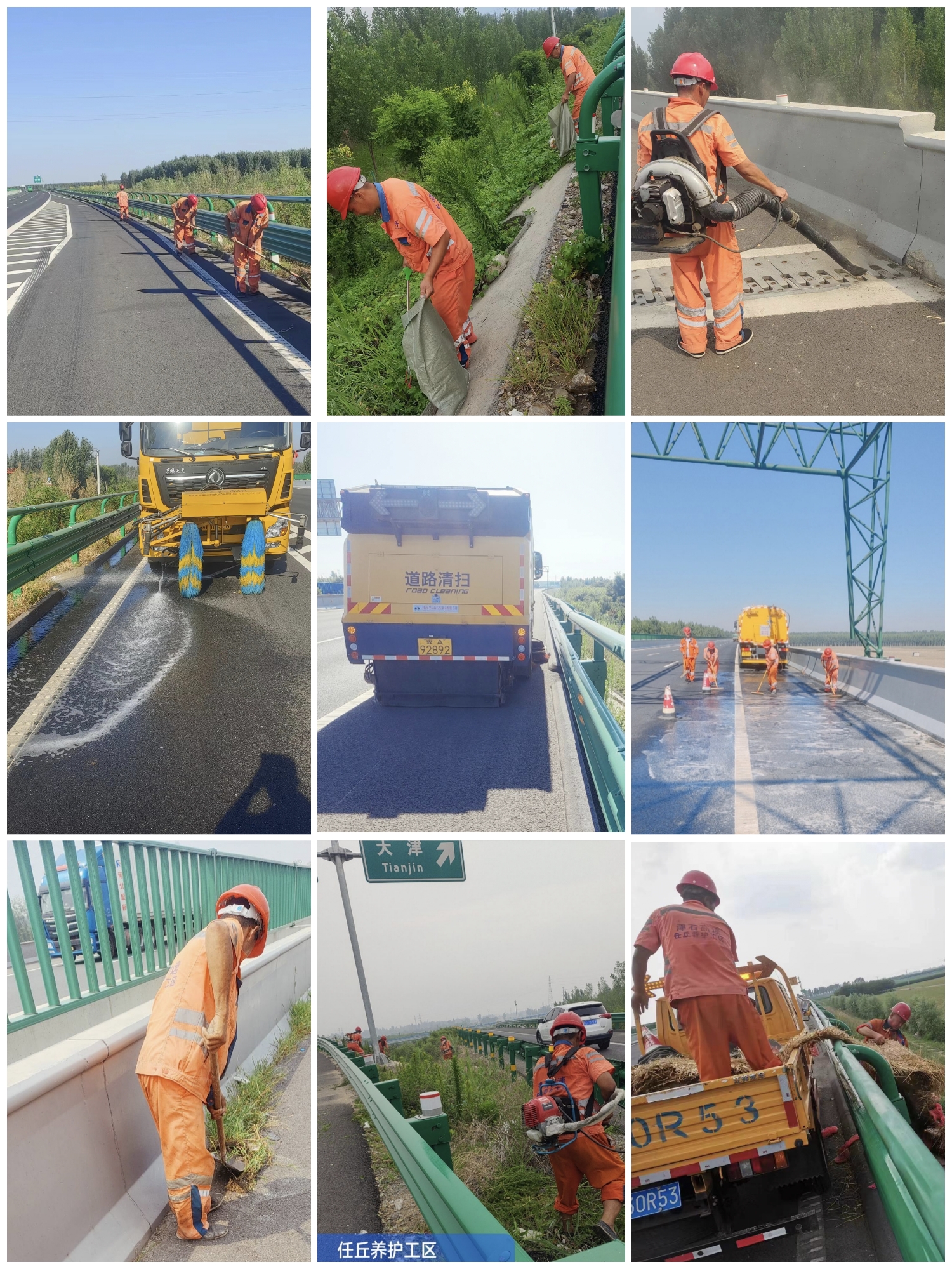 为持续推动公司“大干100天,喜迎二十大”主题活动,落实高速公路路域环境专项整治工作调度会会议要求,任丘工区开展辖段内路域环境整治提升工作:一是以“快、慢速清扫车+洒水车”交叉式清扫为主,人工捡拾大型杂物垃圾为辅,加大路面机械清扫频率;二是对全线进行路肩除草、护栏板和立柱、标志标线、防眩板、轮廓标、隔离栅是否缺失等路容路貌治理工作;三是加大互通区及停车港湾护栏外的白色垃圾清捡,对停车港湾难清理的生活垃圾进行不定期洒水车冲洗工作;四是对油污路面及时进行清理;五是加快事故处理进度,路损修复时限;六是加强与高速路政、交警等单位沟通交流,错峰巡查,提高“路警一体化”协同作战能力;七是要做好全员安全生产与疫情防控工作。