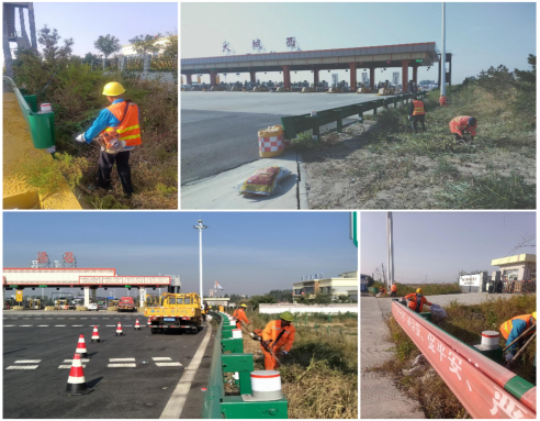 为积极贯彻落实上级关于路域环境专项整治工作指示精神,树立津石高速良好形象,确保国庆期间大城工区辖区路域环境整洁美观。更好的为过往司乘提供安全、优质通行环境,大城工区组织养护作业人员对辖区收费站内外广场及边沟进行垃圾清理及除草作业。