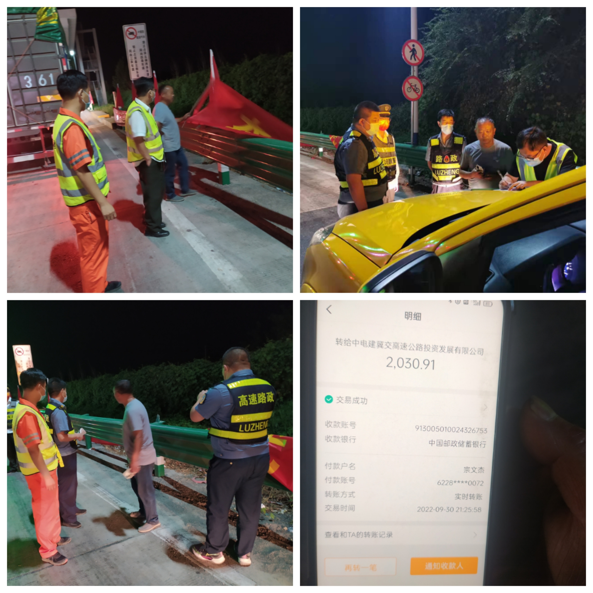 9月30日晚,高阳工区管辖路段内发生一起单方交通事故,接到通知后,高阳工区值班人员快速出动,第一时间到达现场进行安全措施布控及联系高速路政等单位并实际查勘现场路损情况,经和高速路政、事故方司机沟通,决定现场快速处理并办理索赔,于30分钟内处理完毕,事故方车辆驶离现场,避免因事故造成交通拥堵,确保国庆假期津石高速安全畅通!