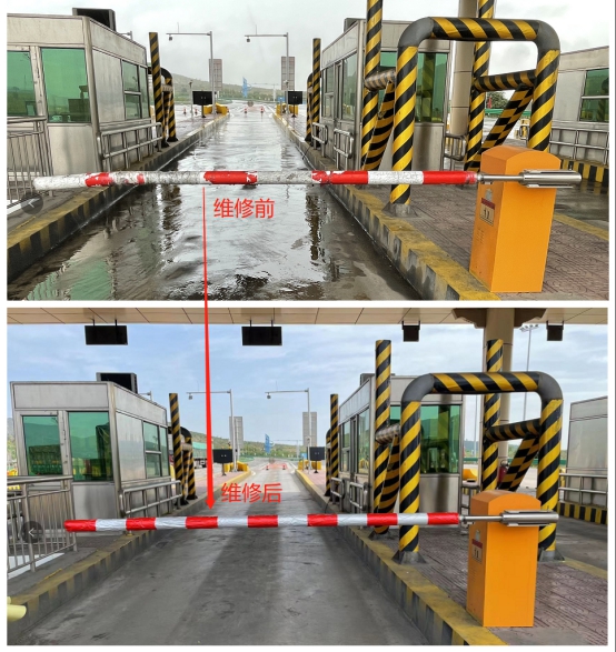 鉴于此情况,顿井收费站机电员在站领导的安排下,自购红白条纹反光带,对自动栏杆机的栏杆进行修复。经过修复后的栏杆,焕然一新,不但消除了安全隐患,同时也提升了站区形象,为我站建设良好的安全和通行环境奠定了基础。