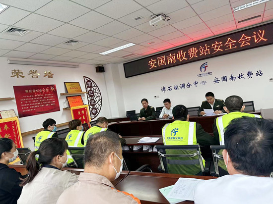 近日,安国南收费站组织在站全体员工召开“二十大”维稳安保工作会议。会议宣贯学习:《关于做好国庆及党的二十大期间安全生产工作的通知》、转发交通运输部《关于广东省在建中山西环高速公路工程项目横栏北互通匝道桥“9.24”箱梁掉落事故的警示通报》的通知等文件。安国南收费站对“二十大”前后安全生产、疫情防控、维稳安保等工作进行部署。