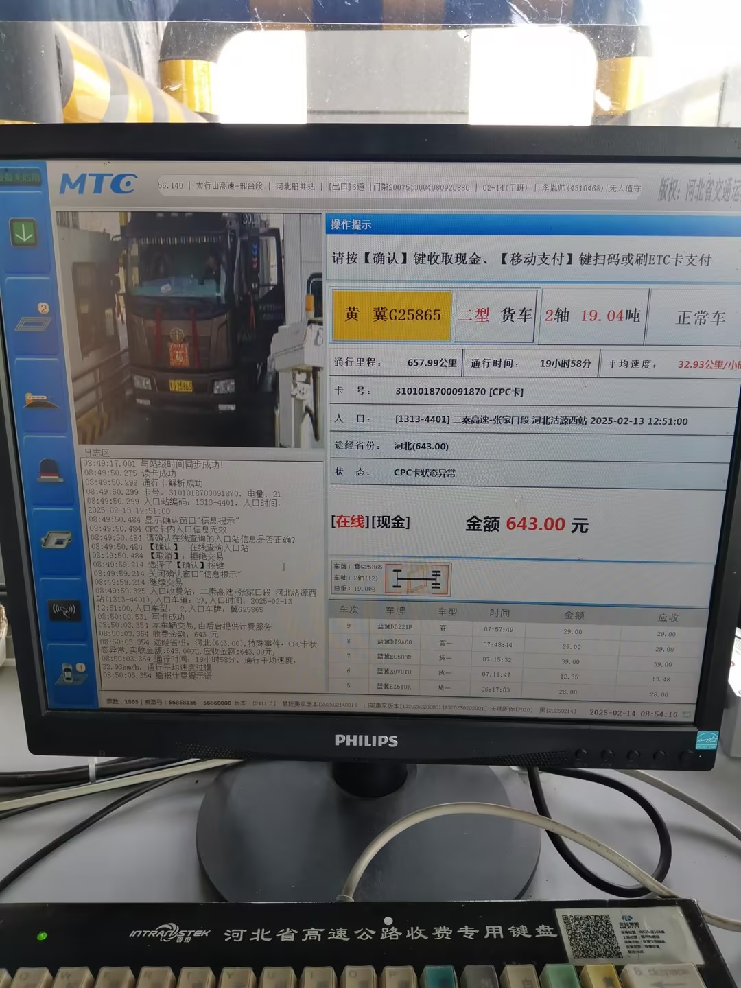 2月14日8时,一辆二型货车驶入册井收费站103车道,司机称车上装载的是土豆,要求享受国家绿色通道免费政策。在核验行车证时发现装载货物总量超出了其核定载质量的5%,不符合绿色通道免费政策,随即上报班长并告知司机车辆超限不可以免费。当班班长耐心向司机解释相关绿通政策,最终司机表示理解,并全额缴纳通行费。