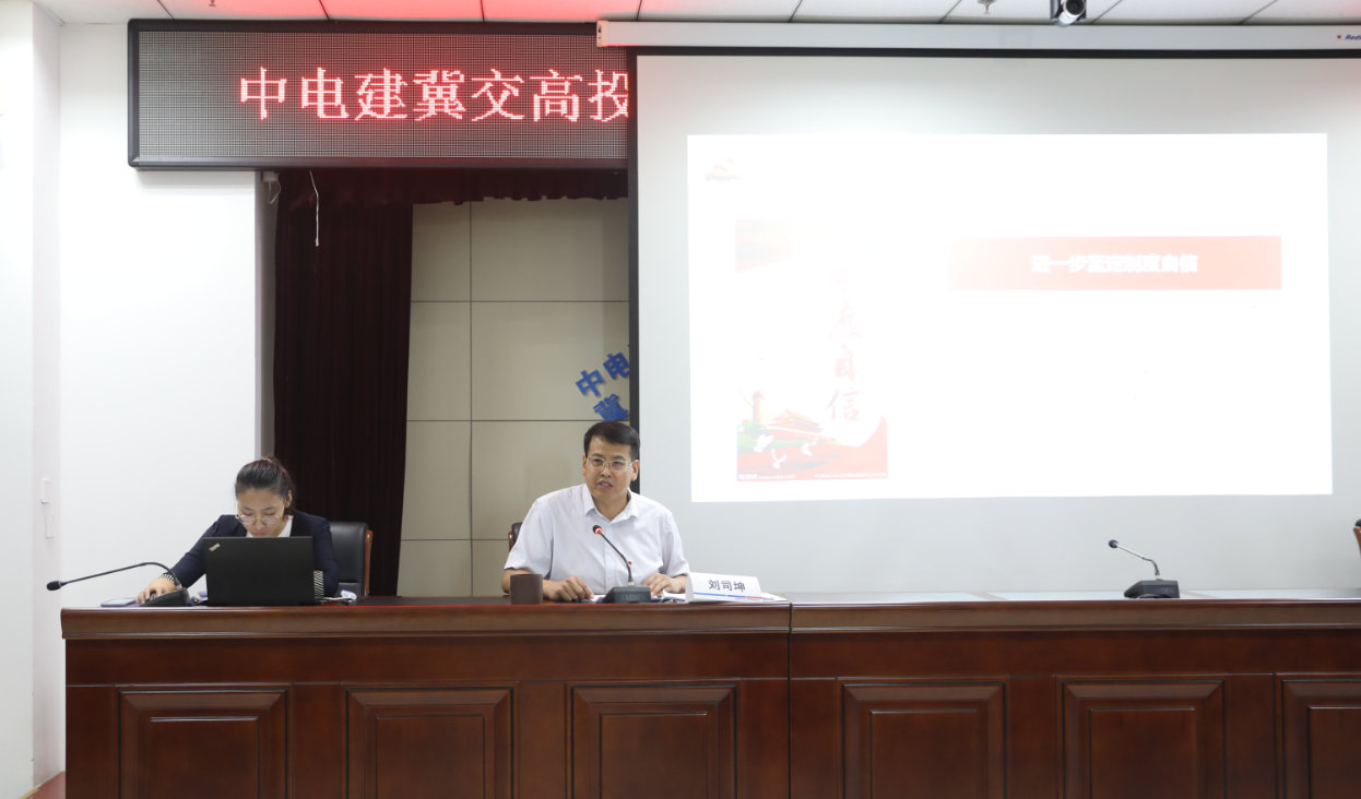 6月12日,中电建冀交高投公司举行“不忘初心 牢记使命”书记讲党课活动。公司党委书记、总经理刘司坤以中国共产党98年光辉历程为题,重点围绕中国共产党历届全国代表大会,进行了一次党史方面的专题授课。专题党题以视频会议形式开展,公司党委副书记、副董事长韩冬卿主持,党政领导班子成员在主会场参加。