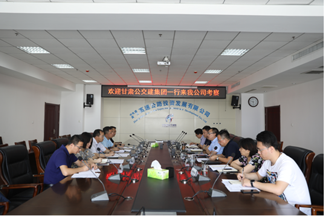 6月28日,甘肃公路交通建设集团运营部负责人郝巨鸣一行5人到我公司考察学习。公司副总经理陈杰、副总经理尉红彬对郝巨鸣一行表示欢迎,双方在公司十一楼会议室进行了座谈。