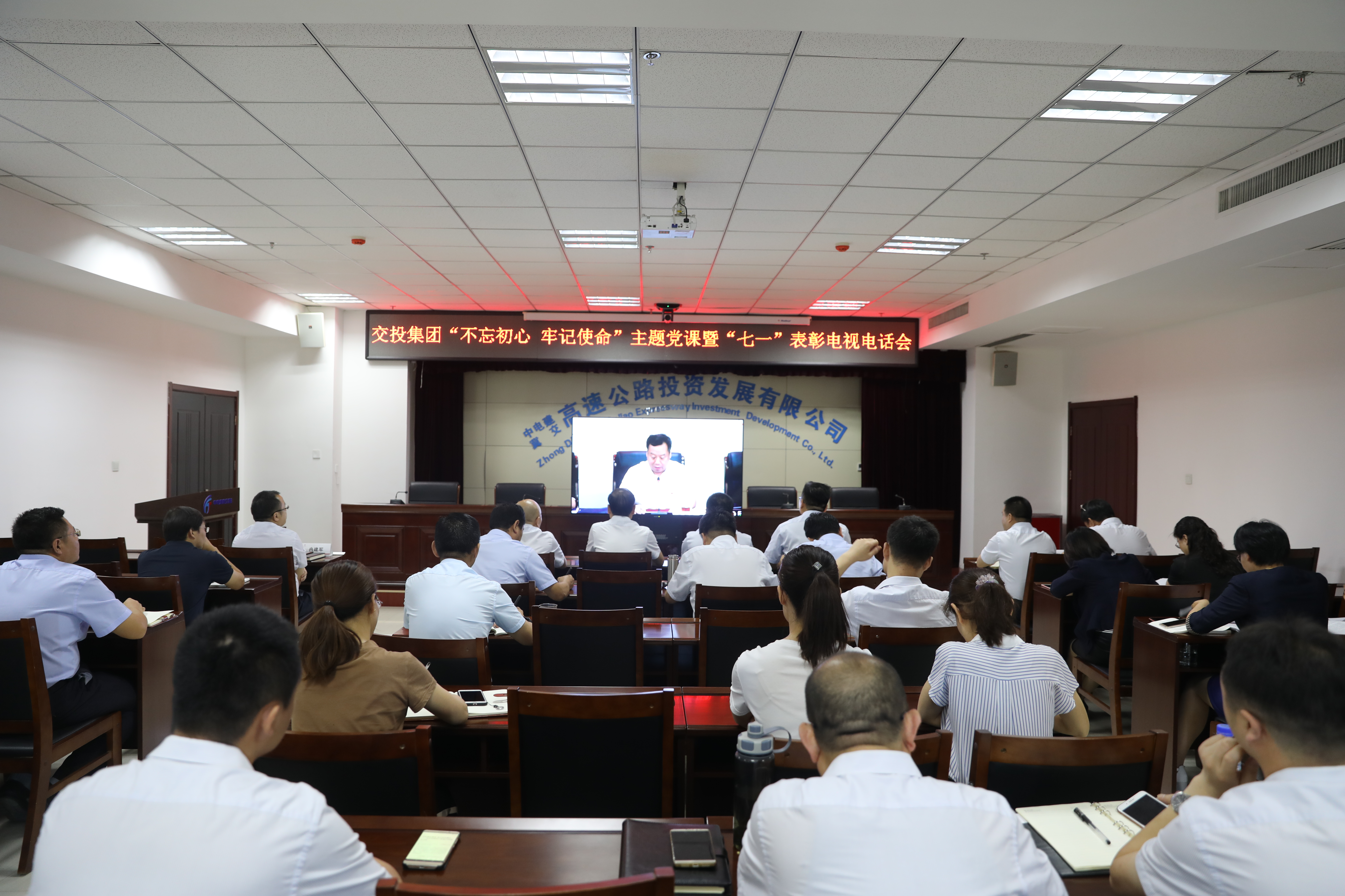 7月1日,中电建冀交高投公司集中组织收听收看了河北交投集团“不忘初心,牢记使命”主题党课暨“七一”表彰电视电话会议。公司党委书记、总经理刘司坤在交投主会场参会,党委副书记、副董事长韩冬卿,公司党委委员、副总经理李凡等公司党政领导班子成员在中电建冀交高投公司分会场参加会议。