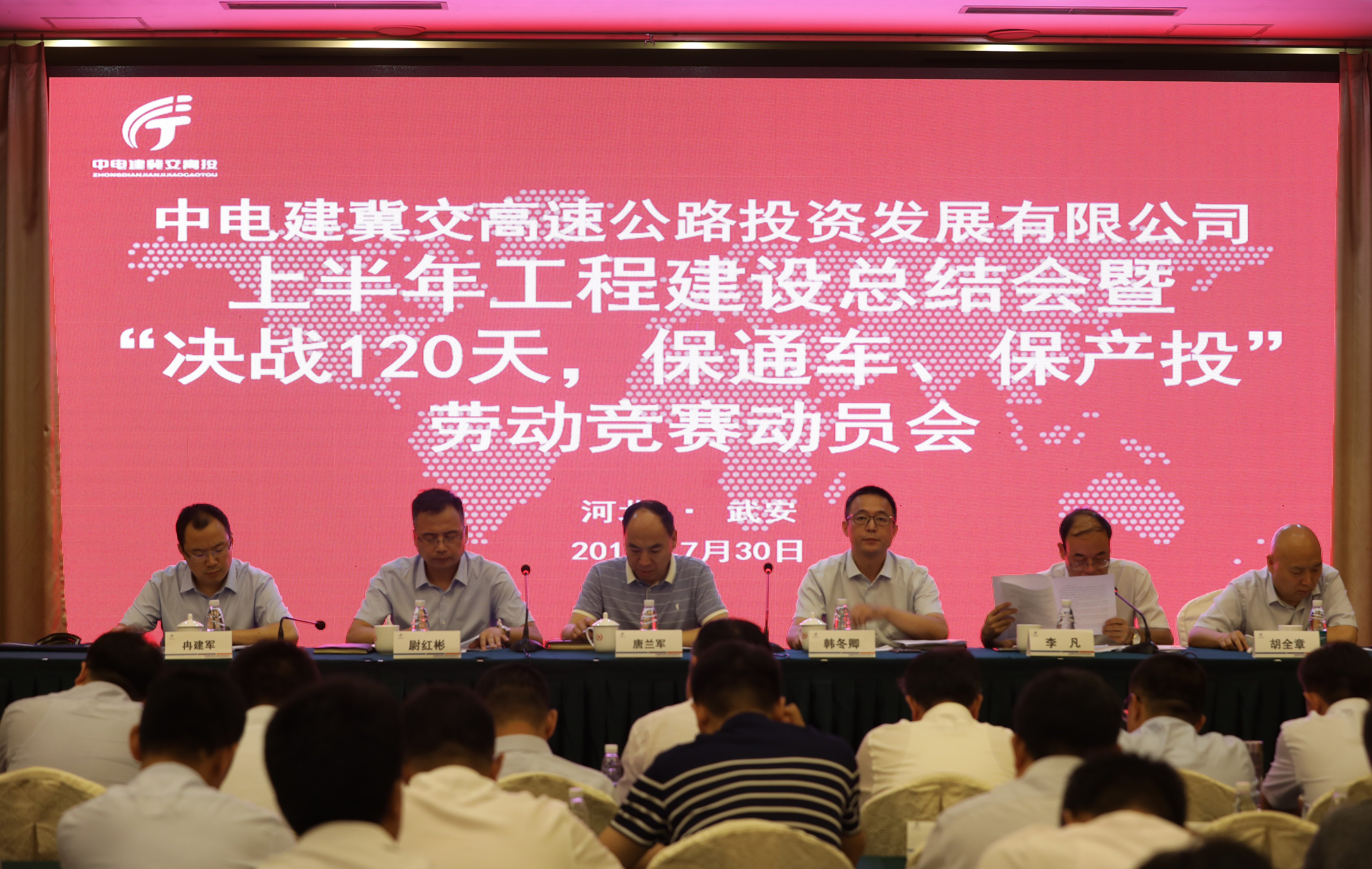 7月30日,中电建冀交高投公司2019年上半年工程建设总结会暨“决战120天,保通车、保产投”劳动竞赛动员会在邯郸武安胜利召开。交投集团基建管理部主任唐兰军应邀出席,公司副董事长韩冬卿及其他经营层班子成员,公司所属各筹建处、邢邯管理中心负责同志出席会议。