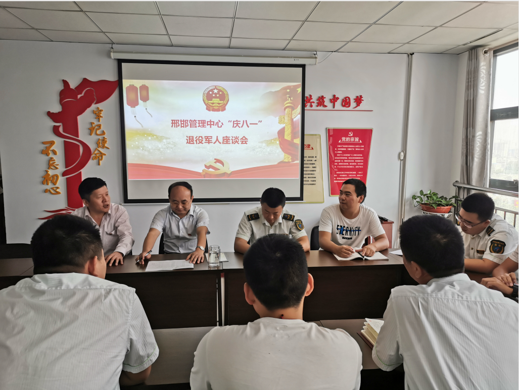 8月1日,为庆祝建军92周年,河北太行山高速公路邢邯管理中心举行“庆八一”退役军人座谈会。会上,管理中心主要负责人刘书祥、张启云与退役军人干部进行深切交谈,并致以节日的问候。