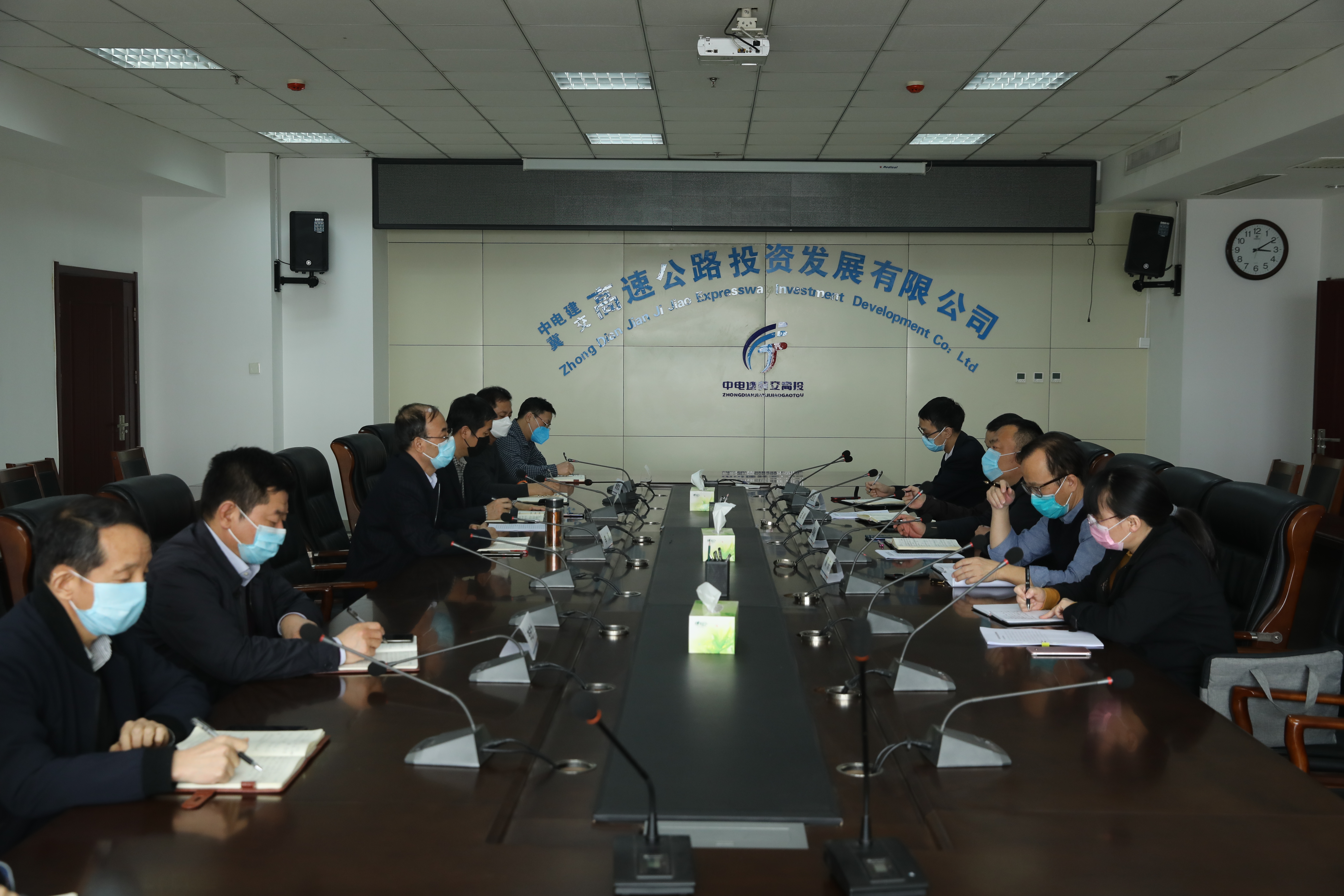 2020年3月24日下午,中电建冀交高投公司与禄发公司在公司11楼会议室召开津石高速服务区合作经营座谈会,公司副总经理李凡、王大德和相关部室负责人,禄发实业总公司副总经理李振松及财务、油品公司负责人出席了会议。