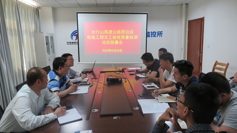 5月20日,太行山高速邢台段机电交工验收质量检测动员部署会在邢邯管理中心西牛峪监控所组织召开。