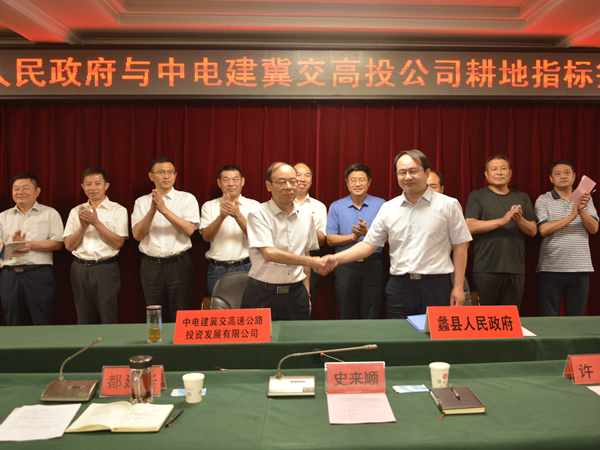 6月5日上午,蠡县人民政府就落实补充耕地指标和相应粮食产能指标与中电建冀交高速公路投资发展有限公司用于高速公路建设项目使用达成一致意见。上午10时,在蠡县人民政府会议室,中电建冀交高速公路投资发展有限公司总经理唐兰军、蠡县县委书记史来顺出席了鉴签仪式,中电建冀交高速公路投资发展有限公司副总经理李凡与蠡县人民政府副县长许涛正式签署了补充耕地指标协议,蠡县政府县长都建华主持签约仪式。