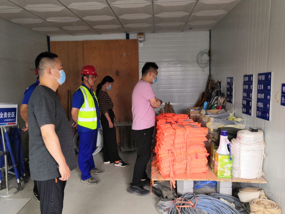 检查组一行重点查看了各参建单位防汛责任制落实、防汛应急救援预案编制修订及演练、防汛抢险队伍建设、安全教育培训、物资储备、应急值守、隐患排查治理以及疫情防控措施等工作落实情况,实地查看了施工现场的安全生产情况,并提出四项要求:一是疫情防控不能松懈,切实做好门禁登记、测温、消毒等管理工作,重点掌控新进人员的健康状况,把常态化疫情防控落到实处。二是各参建单位要持续强化汛期工程建设安全管理,合理安排施工计划。三是加强对人员驻地、施工现场安全隐患的排查治理,落实完善防护设施和警示标志。四是对检查发现的隐患,建立台账,明确主体、责任人和时限,强化责任追究,确保整改到位。
