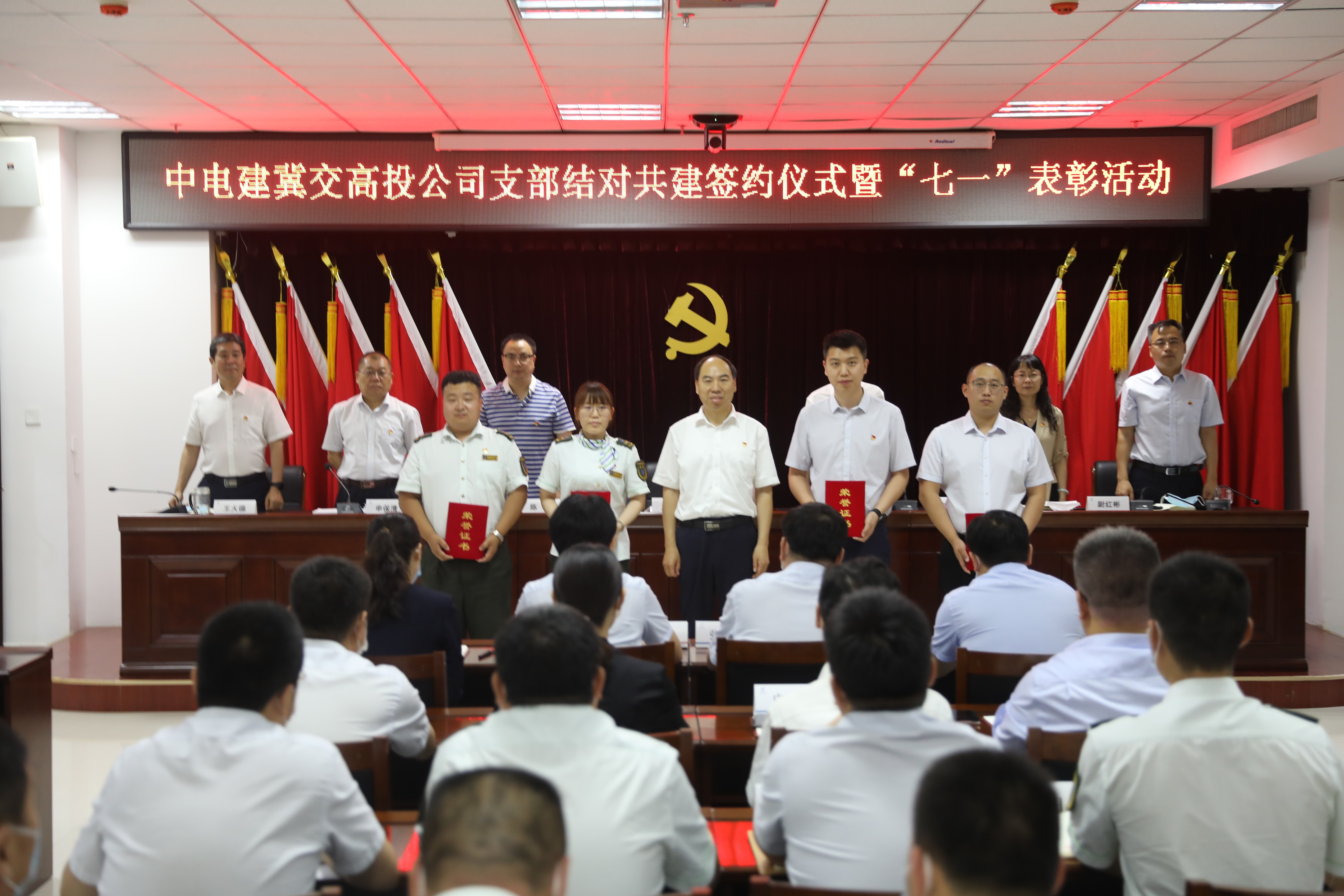 6月23日上午,中电建冀交高投公司隆重举行支部结对共建签约仪式暨“七一”表彰活动。公司党委书记、总经理唐兰军及其他党政班子领导出席活动。活动由公司党委委员、副总经理陈杰主持。